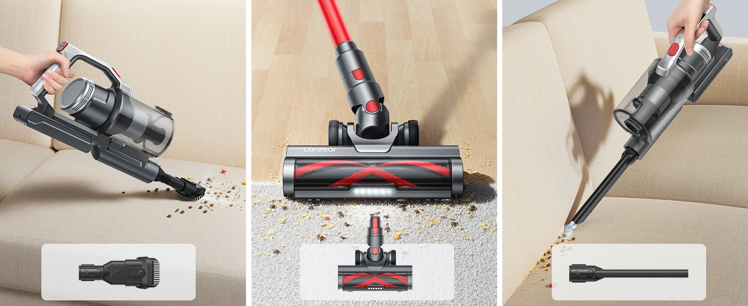 O aspirador sem fios Laresar utiliza um motor de alto desempenho de 500 W, que proporciona uma potente aspiração até 38 kPa. Possui 3 velocidades opcionais e a potência mínima de aspiração é de 12 kPa. O aspirador pode eliminar...