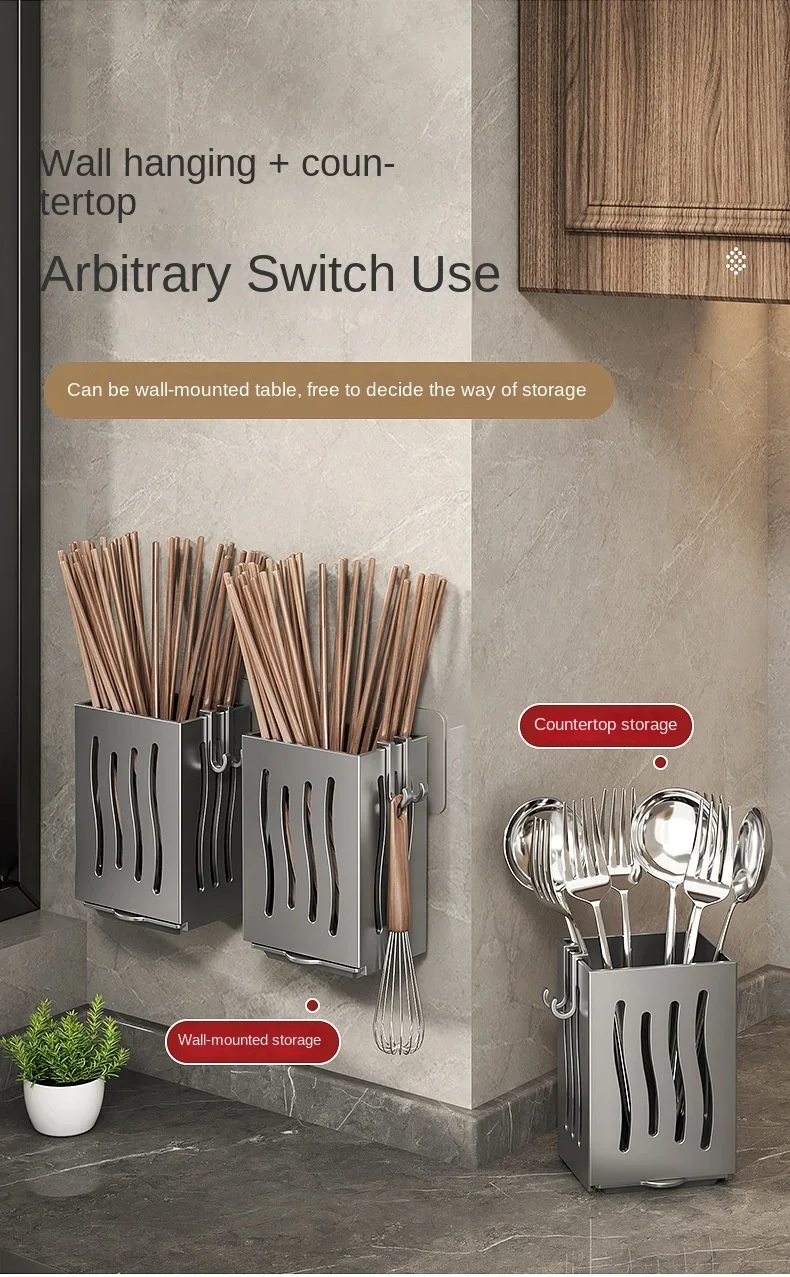Este suporte de armazenamento de cubiertos montado multifuncional na parede é feito de HIPS ABS de alta qualidade, que é inodoro, não tóxico, elegante, resistente e durável.