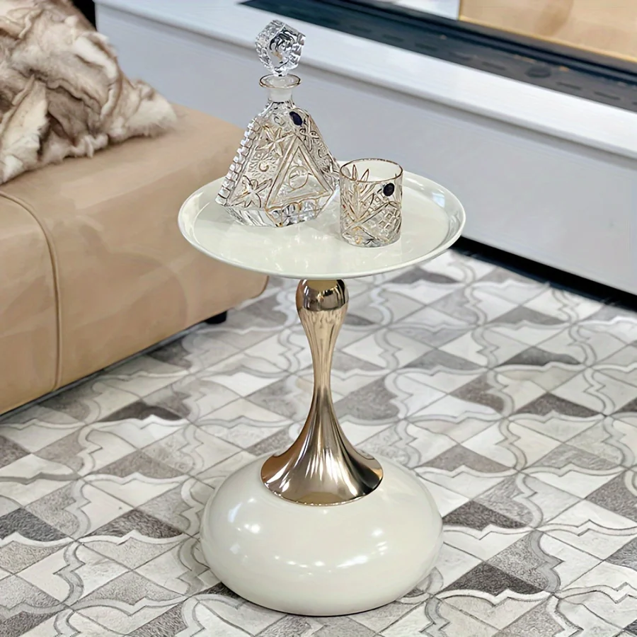 White Round Coffee Table with Gold Base